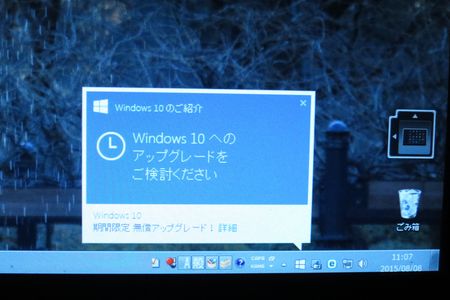 更新を申し込んでおいたPCの画面に 以下のような