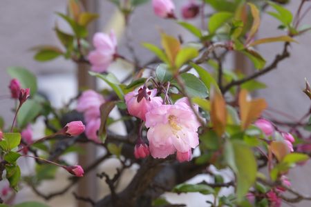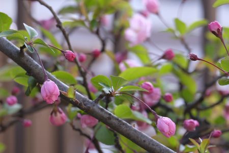 つまり 我が家の庭先にある海棠桜の開花宣言です