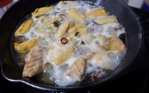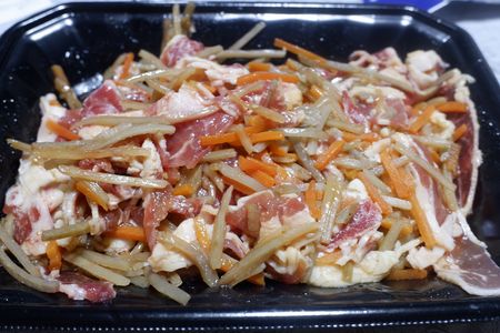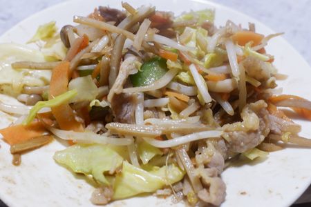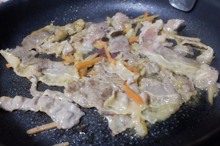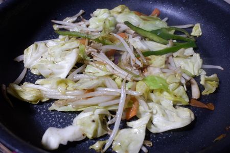 油をキッチンペパーで拭き取り 野菜で嵩増しします