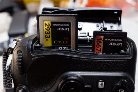 左がXQDカード 右がUHS-ⅡCLASSのSDカードです