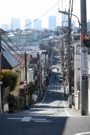 坂上から さらに先を見ると 馬込の八幡神社の裏手になります