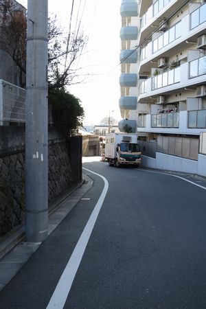 坂の1/3くらいで左の方にカーブしています