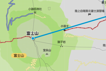 富士山頂もチェックして 引かれた線を確認すると