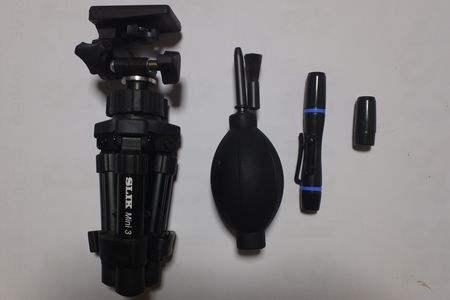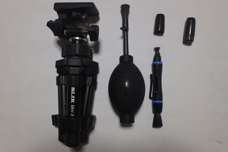 左から ミニ三脚 ブロアブラシ レンズペン の順です