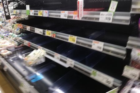 面白いことに スーパーのカップ麺棚は ほとんど空でしたが