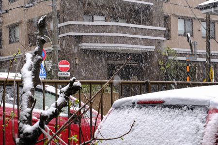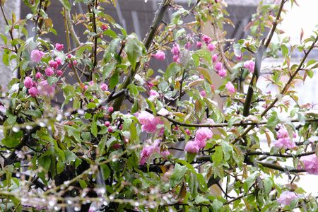 咲き始めた 庭の花海棠も氷雨に打たれ凍えているようです