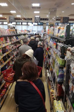 スーパーのレジに 長~~ぁい行列が出来ていました