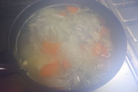 野菜を切り 煮立ったお湯にぶち込みます