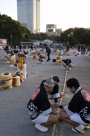 チケットの無い人は 遠くからオーロラビジョンを見るだけ
