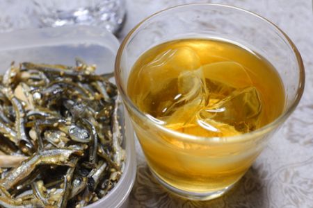 肴は アーモンド小魚と 「山田マチの山だの街だの」です