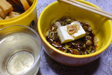 そんな訳で夕食は残り物です メインの肴は湯豆腐