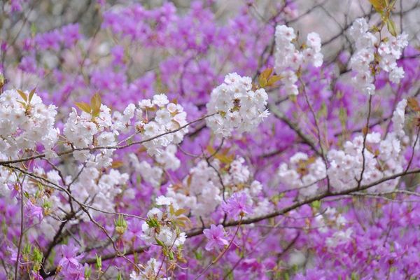 シノサクラとピンクの花は 多分ミツバツツジと思います 知らんけど