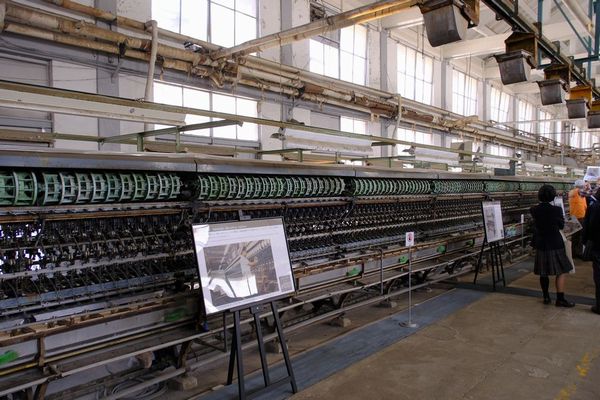 繭を湯で温めて 糸を紡ぐことを行う繰糸器が300台もあったとのこと