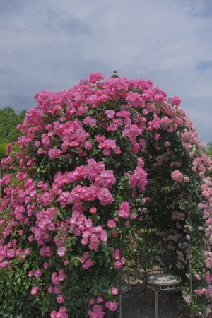 薔薇のドームの中に二人で座って撮影する フォトスポット