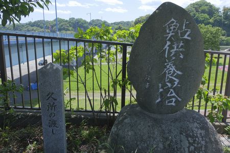 鮎供養塔の横に 久所の渡しの碑も有りました ここで相模川を越えて