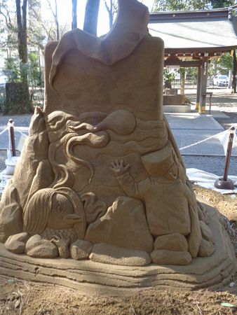商店街を抜けた先にある布田天神社には 鬼太郎のサンドアートがあり