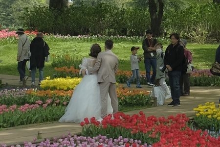 このカップルは 何処で着替えて この公園でフォトを撮っていたのか?