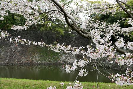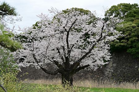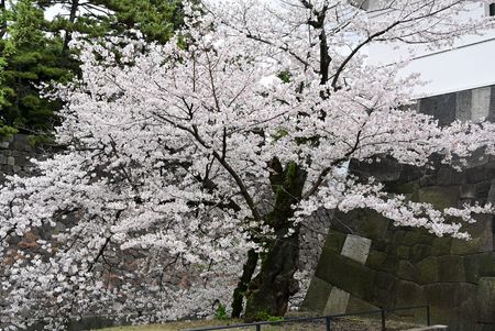 皇居の中らしく サクラ越の石垣も撮ってみました