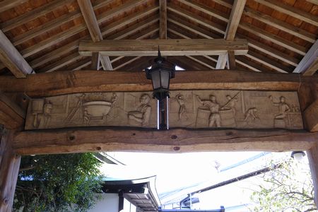 櫓の内側には ビールを製造する工程を記した レリーフプレートがあります