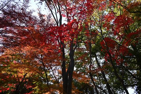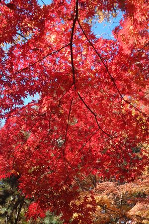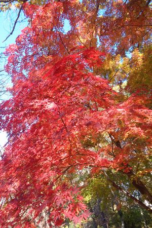 同じ木の裏モミジです 赤が引き立ちます