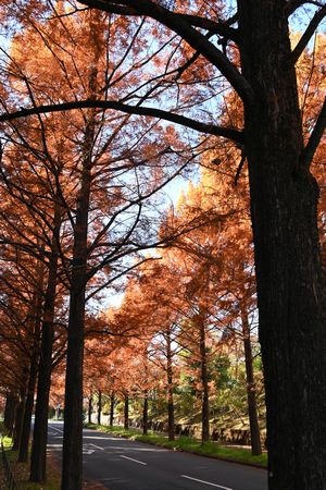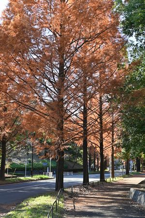 同じ並びなのに葉が残っている樹と 丸坊主の樹があります