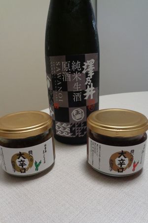 お供は 赤青唐辛子の米麹醤油漬けです