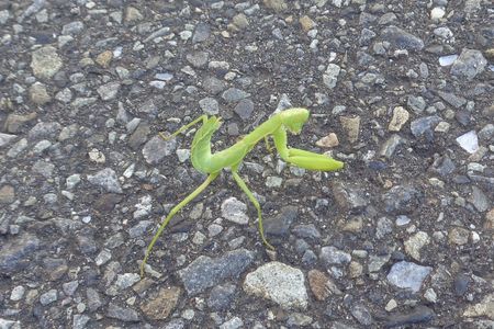 最後は 生まれて間もないカマキリです 道の真中なので車に轢かれそう