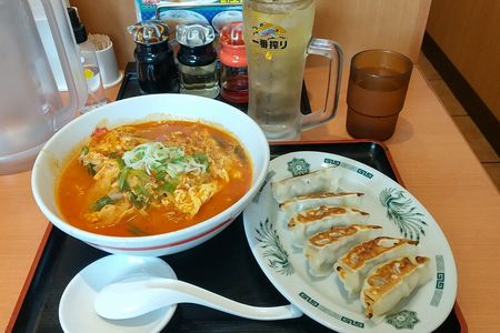 熱烈中華日高屋の大宮担々麺と餃子セット+ハイボールです