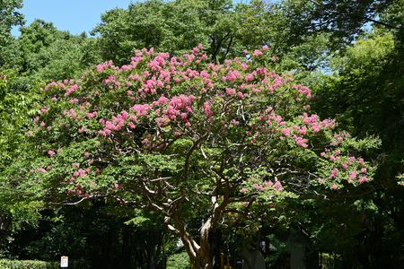 望遠レンズの圧縮効果を使って サルスベリの樹が密になるように撮影
