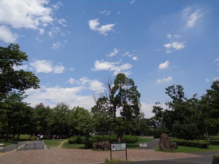 散歩に出ました 空は秋のように高く見えます