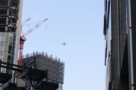 爆音を耳にして 空を見上げると上空をジェット機が通過