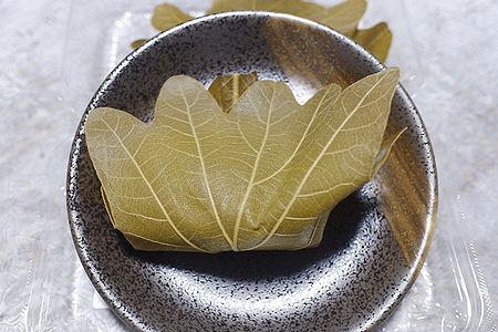 オシャレな包装紙が 亀屋萬年堂の柏餅です
