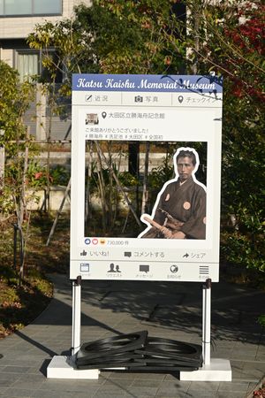 これは 勝海舟記念館の前にある 顔はめオブジェ なのか?