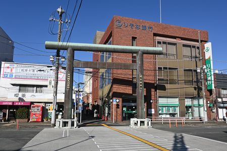 小田急線伊勢原駅前の大鳥居 これを見ながら出発です 神奈中バスで・・・