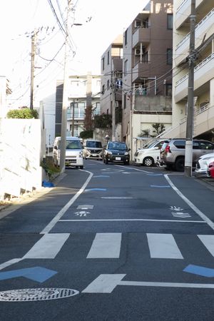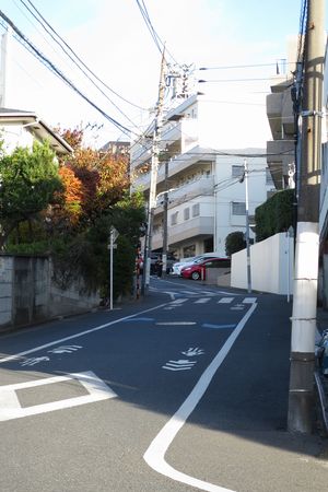 頂上から 坂下の方を望む 坂の傾斜はだんだん緩くなり