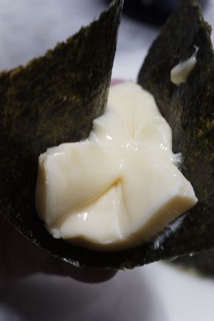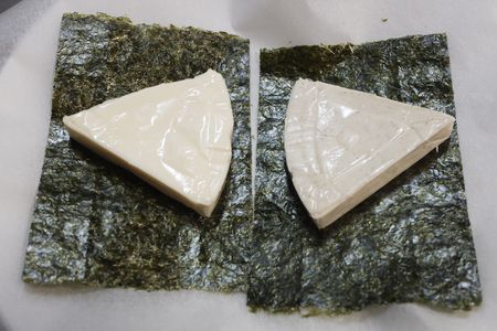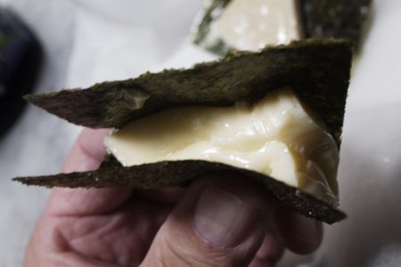 溶けかかった 6Pチーズに海苔を巻いて 食べます