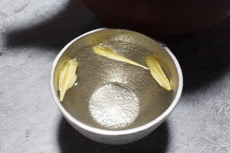 盃にも 菊の花弁を浮かべて 風情を醸し 楽しみます