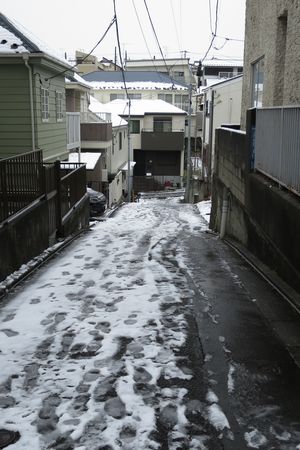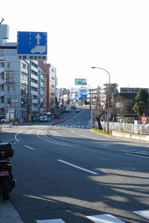 坂の途中から坂上の方を眺めます