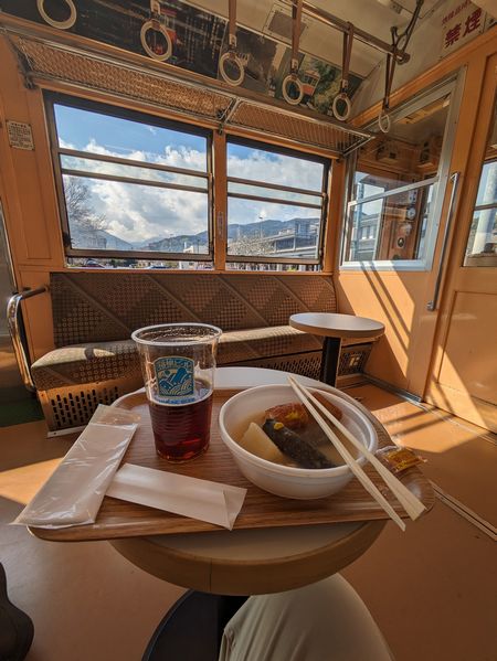 登山鉄道の102型車両が飲食可能なようになっているのです