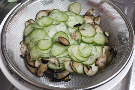 薄切りした きゅうりとナスを冷凍庫で凍らせました