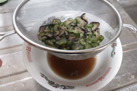 翌朝 凍ったきゅうりとナスを 自然解凍します